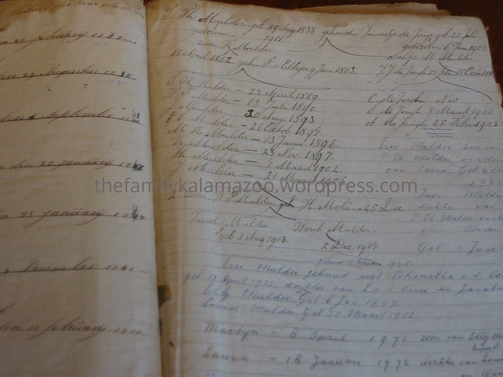 One Mulder I’ve (virtually) met is Elly, who lives in the Netherlands. She is descended from the same Karel Mulder, the jailor’s hand, that both my maternal grandparents were. As she puts it, she is a descendant of Karel Mulder (1837-1881), the eldest son of Karel Mulder and Rosalie (Rose Melanie) Bataille.