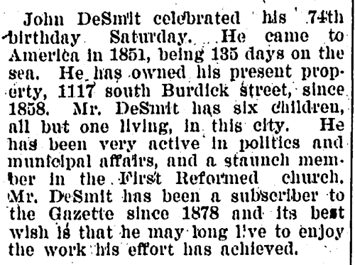 Patriarch of the DeSmits: A Pioneer of Kalamazoo » Kalamazoo_Gazette_1899-07-02_9