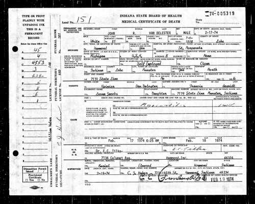 The Next Generation of DeSmits: The Other Grandchildren (or Biting Off Too Much) » John Van delester death cert