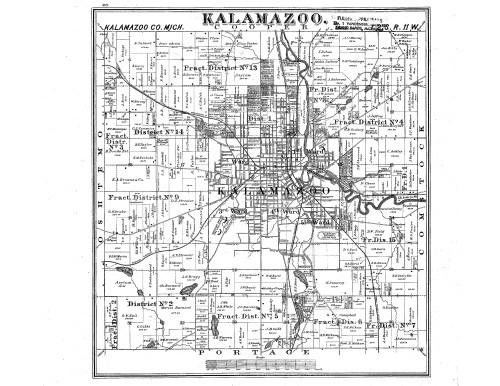 This is an 1890 map of Kalamazoo Twp. At the top of the page the look at “Kalamazoo” and below the Z, in section 10 where the RR tracks become closer, you will find a 10 acre plot which says Paak & Son. The road at the west edge of the property is Pitcher St. and the area is currently (and it depends) either the now defunct Checker Motors or what was the Brown Co. It has been several different paper companies and I have no longer been able to keep up with its current name. But, at one time, it became very expensive property.
