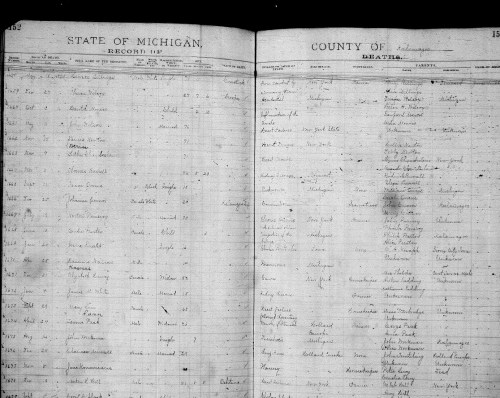 Amberly was as mystified as I was by who “Perina Pick” might be. She was listed on the 1870 census in Cooper Township (Michigan) in the wife position after Teunis. Then Amberly found a Findagrave memorial which must belong to her. PERINA PECK This page indicates she died in 1890. There is not a photo of a headstone or any other information, so this information might have come from cemetery records. Since the last name reads as Peck it seems unlikely that Teunis would have had the headstone engraved. Furthermore, she isn’t listed with the family in the 1880 census.