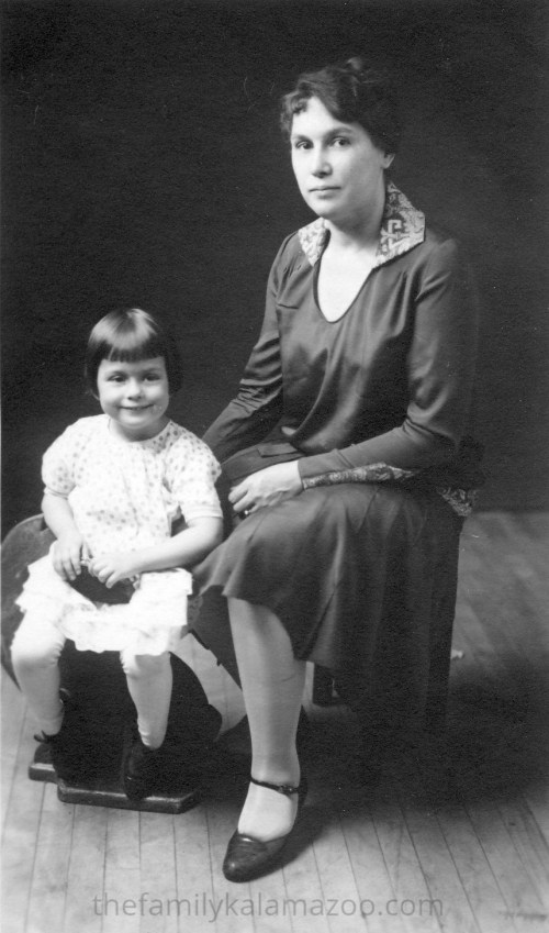 My paternal grandmother made Dolly’s wedding gown, as well as accessories to go with the dress. My grandmother was the head fitter of the 28 Shop (couture) at Marshall Field’s flagship store. She dressed many celebrities and other prominent Chicago people. In this photo, my grandmother Marie is helping Dolly dress on the special day.