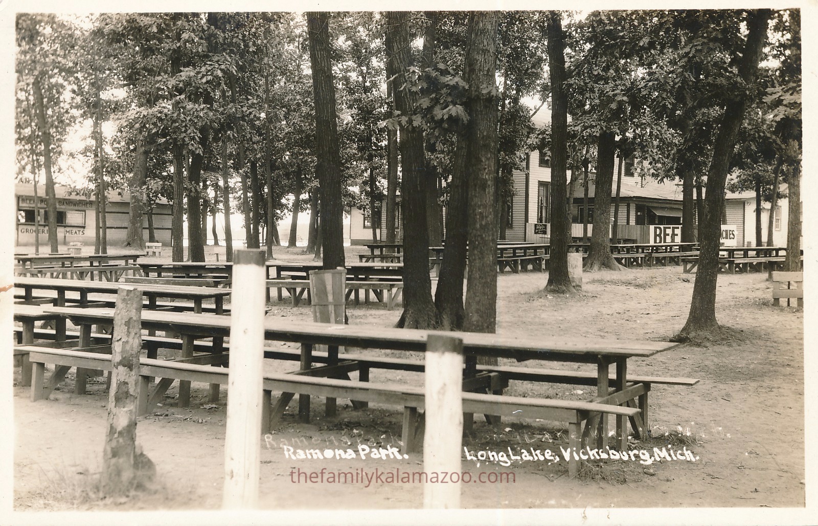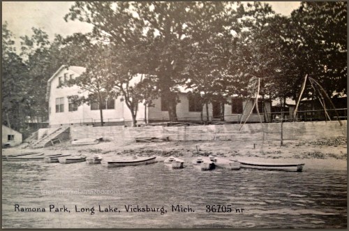 Vicksburg never included Ramona Park, which was at Long Lake. However, at that time Portage as a town was much smaller than Vicksburg, so it would have been the closest “big” town. Also, the Grand Rapids & Indiana Railroad had a flag stop at Ramona Park, and their closest depot was in Vicksburg.