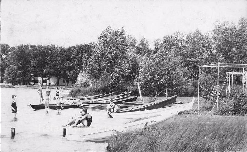 On the left side of this photograph are the windows at the end of the building that face the lake. The bandstand was just inside those windows. And see the steps leading down to the lake? They would lead you right into the . . . bottomless drop-off! That was such a scary part of the lake by the sixties! I imagined all kinds of underwater beasts living in that mysterious section of the lake.