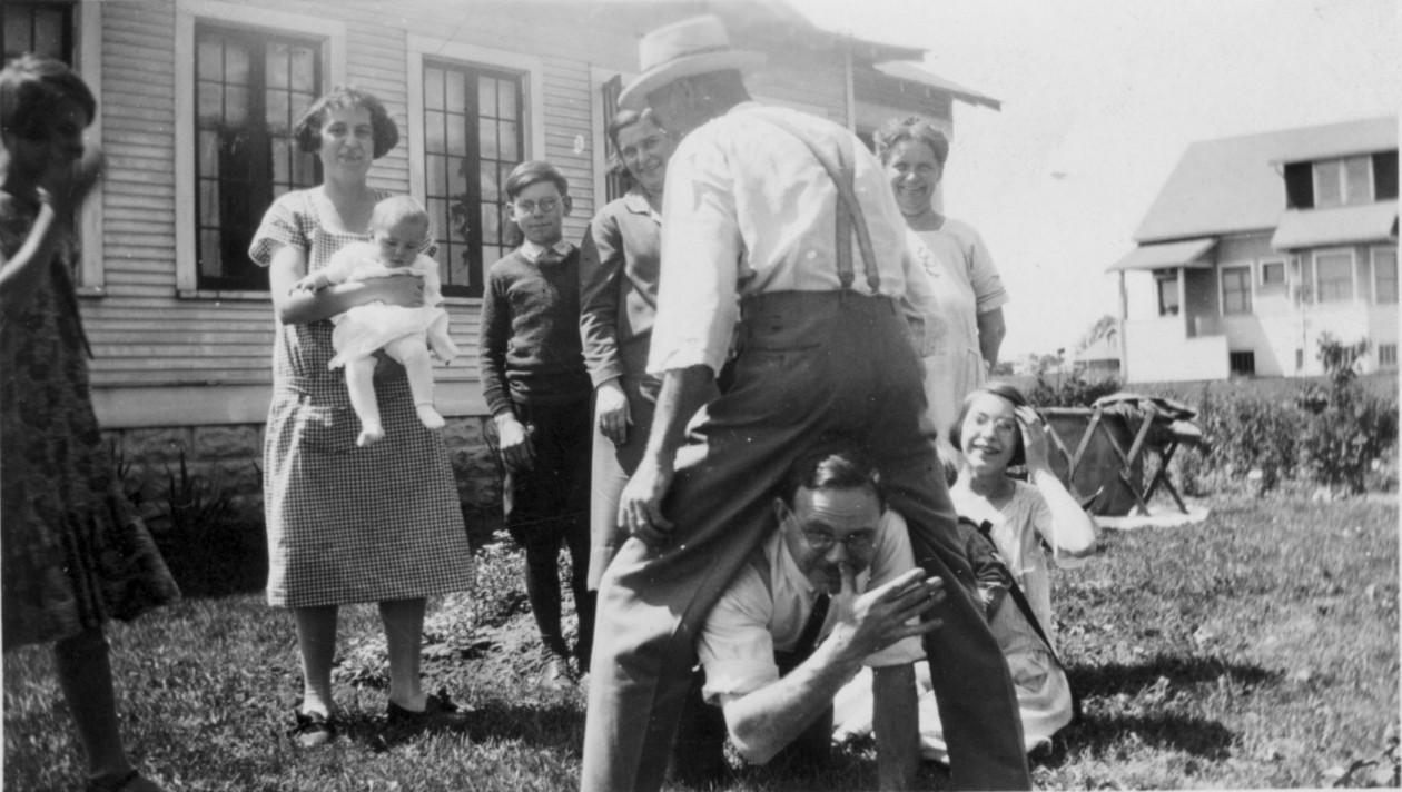 So who is in the photo above and what year might this be? The back row is Helen, Marie (my grandmother), Elizabeth, Margarethe (their mother), Peter Van Gessel. In the front row is Frank (their father) and the Van Gessel children–Frank and Margarethe’s grandchildren. Anna, the other sister, is probably taking this photo.