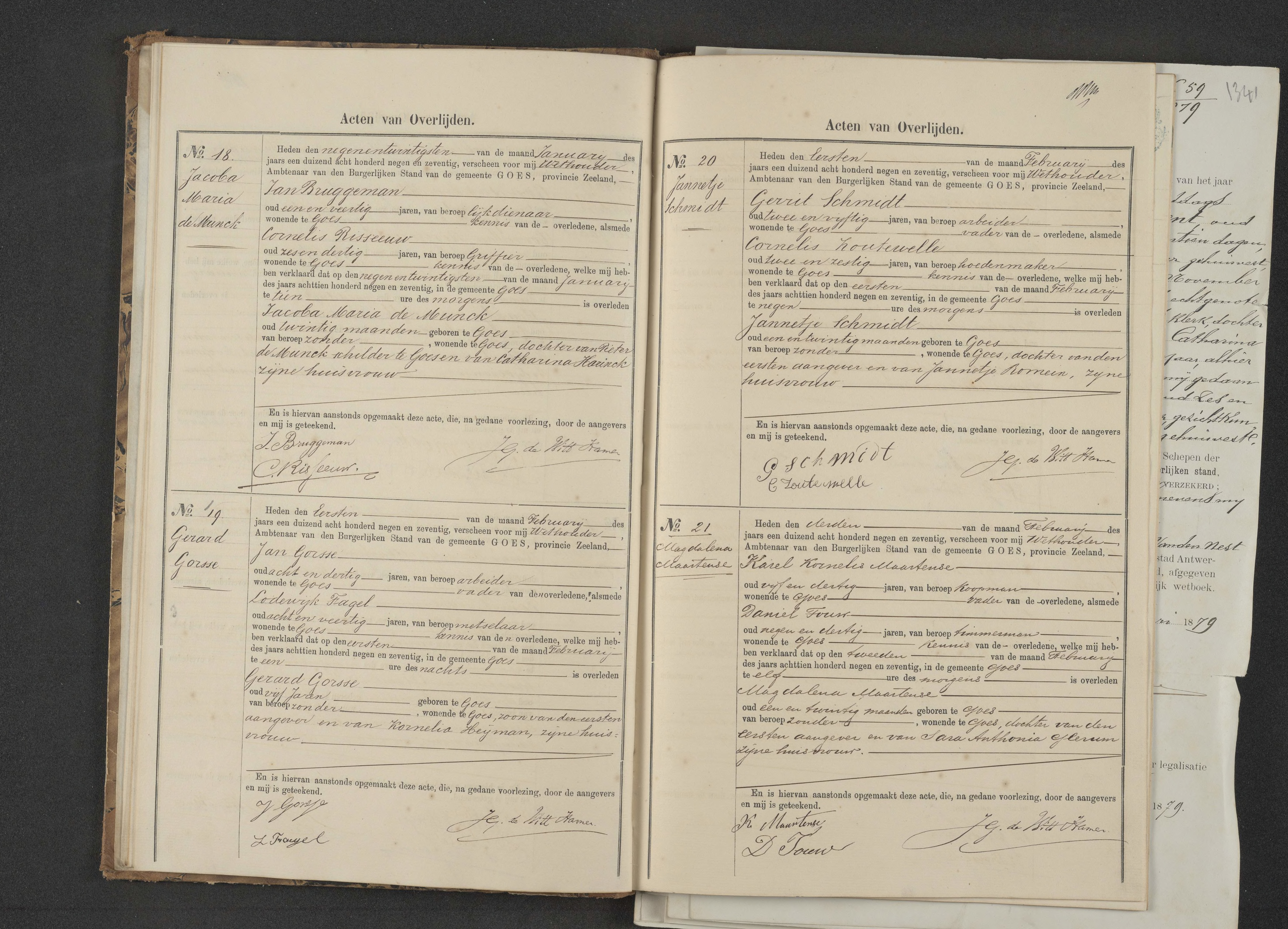Jan Gorsse in militia registration, 1859 Source: Goes, lists of men registered for the National Militia, levies 1851-1862, 1859 no. 21, Jan Gorsse; call no. 1438, archives of the city of Goes, 1851-1919, Goes Municipal Archives, Goes; scans provided by Goes Municipal Archives.